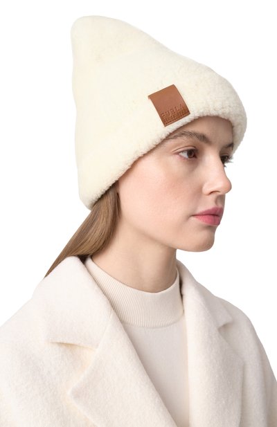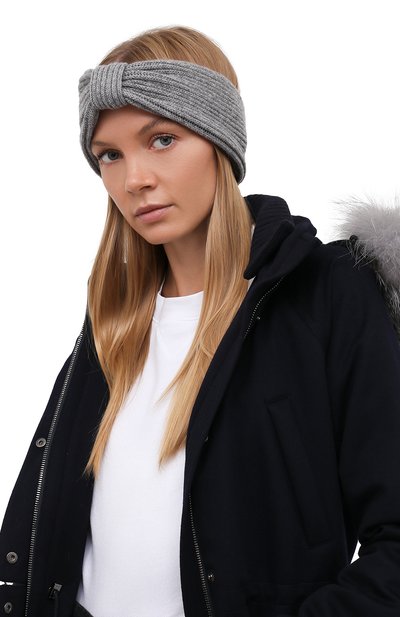 Широкую повязку на флисовом подкладе связали резинкой из шерстяной пряжи с добавлением полиамида и пуха альпака. Спереди аксессуар украсили фирменной нашивкой.