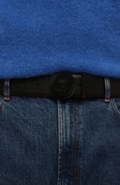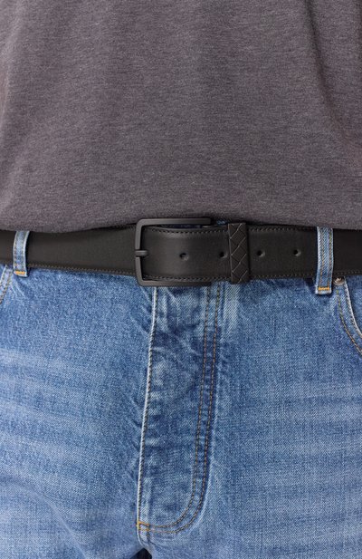 Для изготовления ремня средней ширины использовали гладкую кожу. В комплекте — две брендированные прямоугольные пряжки: кобурная и с язычком.