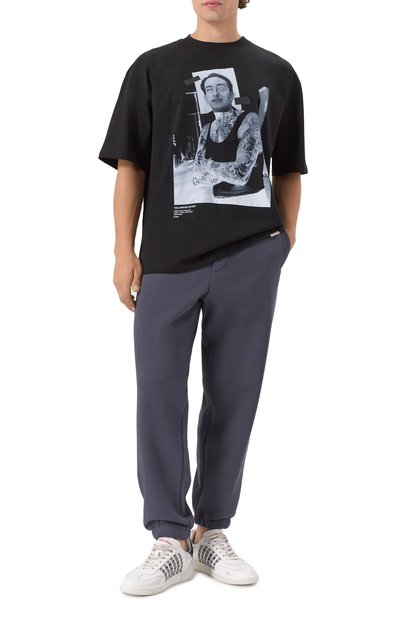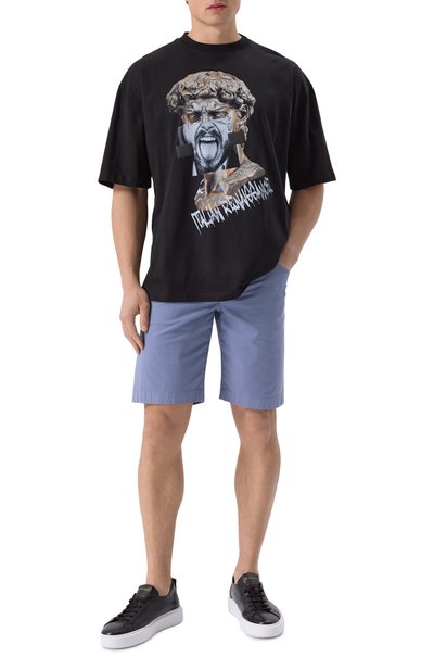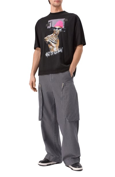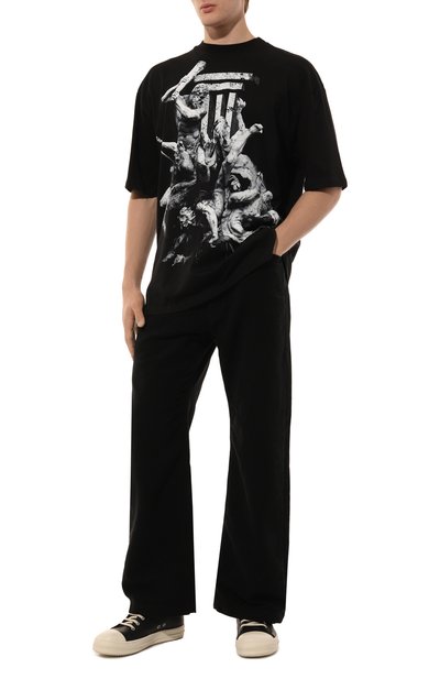 Для пошива футболки свободного кроя использовали хлопковый трикотаж. Модель с эмблемой марки на груди украсили изображением полотна Караваджо «Обращение Савла » спереди и описанием картины сзади.