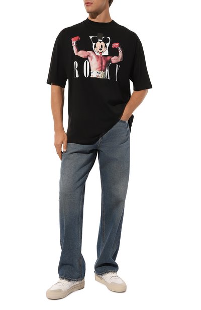 Для пошива футболки свободного кроя использовали хлопковый трикотаж. Модель с эмблемой марки на груди украсили изображением полотна Караваджо «Обращение Савла» спереди и описанием картины сзади.