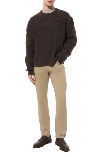 Дерби Moccar выполнили вручную из зернистой кожи. Модель с рельефным швом вдоль мыса установили на каучуковую подошву с литым каблуком.