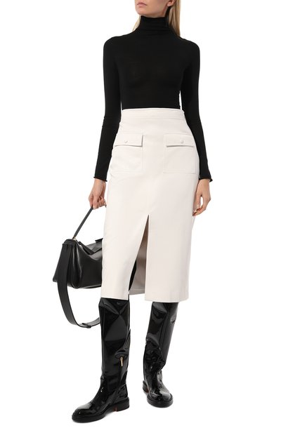 Ботфорты Miniblocco на небольшом скошенном каблуке выполнили из кожи. Модель с боковой молнией дополнили еще одной, расположив сверху голенища.