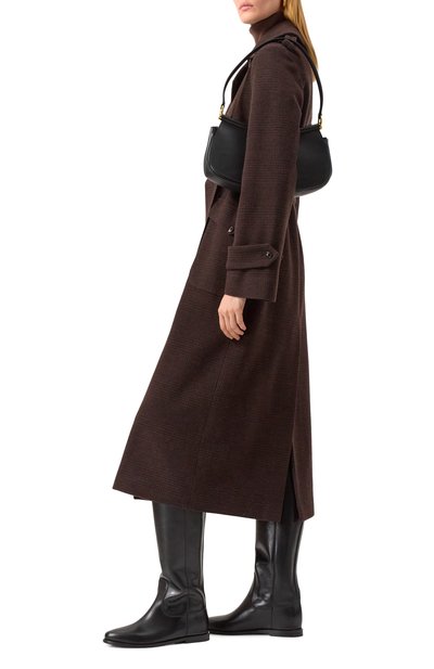 Сапоги на низком каблуке выполнили из полуглянцевой кожи. Голенище украсили ремешком с брендированной гравированной пряжкой.