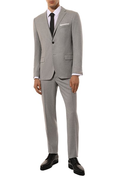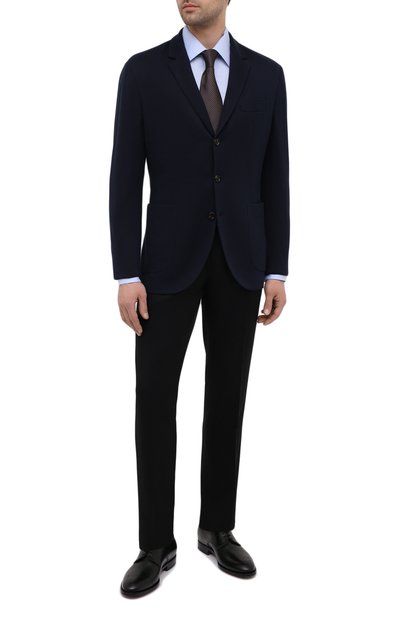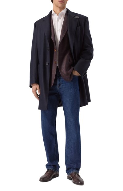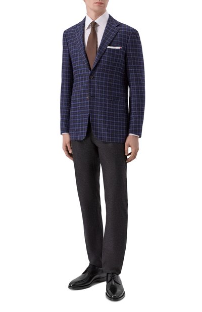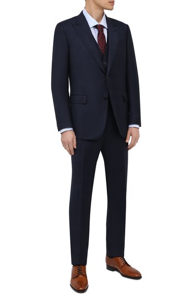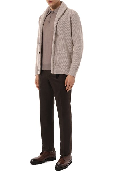 Классические дерби с перфорацией сшили из гладкой телячьей кожи с эффектом патины. Модель с миндалевидным мысом и невысоким каблуком отполировали в готовом виде до полуглянцевого блеска.