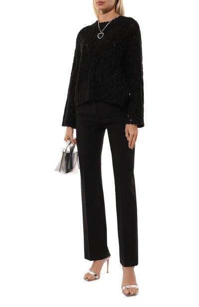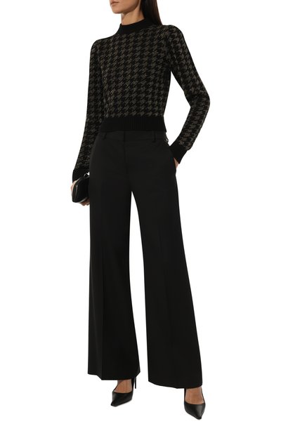 Пуловер с глубоким V-образным вырезом выполнили из кашемировой пряжи. Модель с леопардовым мотивом комфортно носить даже на голое тело.