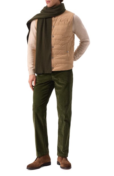 Брюки прямого кроя выполнили из стрейчевого хлопкового вельвета с добавлением модала. Модель, окрашенную в готовом виде, дополнили прорезными боковыми и задними карманами.