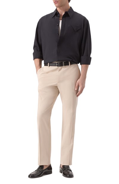 Рубашка из кашемирового твила составит гармоничный повседневный дуэт с парными брюками. Модель с супатной застежкой дополнили накладными нагрудными карманами.