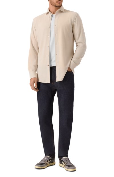 Кеды Bskt Clay с аппликациями-иероглифами на боковых панелях выполнили из замши. Верх с кожаной внутренней отделкой установили на контрастную подошву с фирменными печатями и штампами.