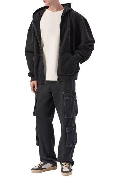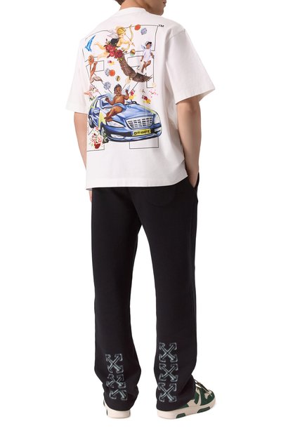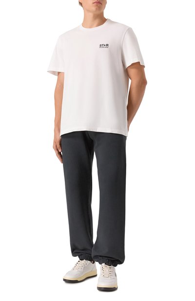 Футболку свободного кроя сшили из хлопкового джерси. Изделие с круглой горловиной и спущенной линией плеч украсили брендированным принтом Chevron спереди и его увеличенной копией сзади.