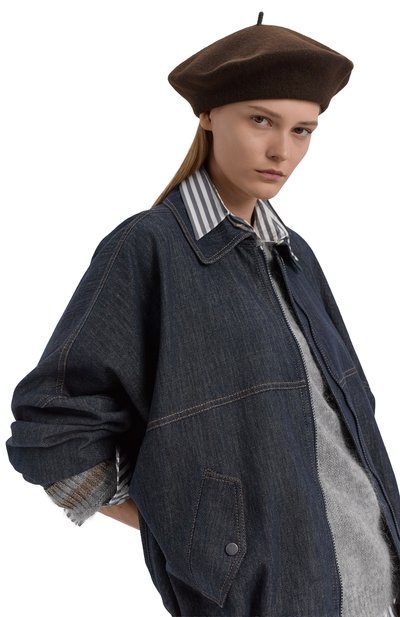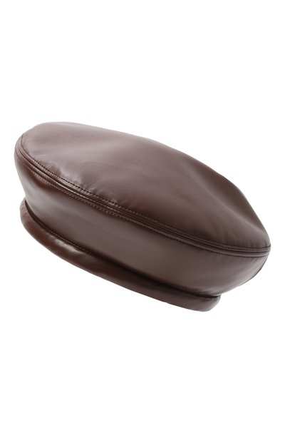 Берет с манжетой-роликом выполнили из искусственной глянцевой кожи. Яркий аксессуар может стать акцентной деталью образа.