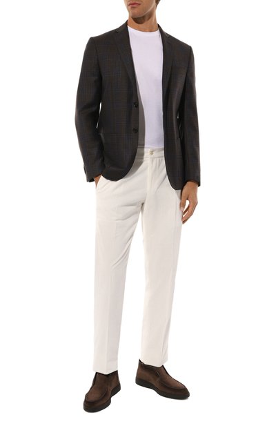 Ботинки Adam конструкции Strobel выполнили из замши, а внутреннюю отделку – из кожи. Верх с фактурным швом, очерчивающим мыс, установили на сплошную резиновую подошву с тисненым логотипом.
