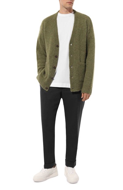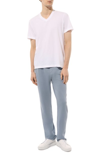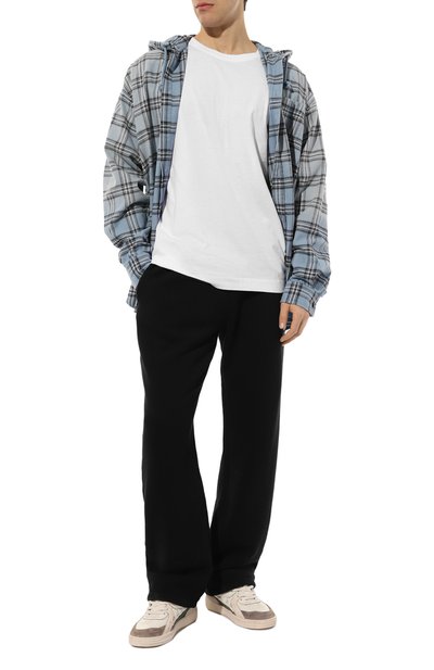 Для пошива футболки с круглым вырезом в рубчик и спущенной линией плеч исполь зовали хлопковое джерси. Модель прямого кроя украсили спереди эмблемой Oval D, вышитой нитью в тон.