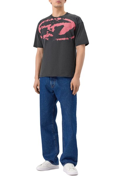 Футболку Leonard кроя Relaxed fit выполнили из джерси на основе органического хлопка. Спереди модель, прошитую оверлочной строчкой, декорировали размытым принтом, напоминающим граффити.