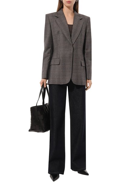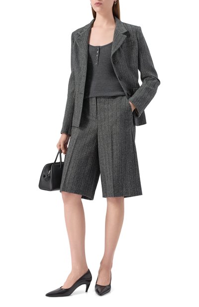 Топ Ireni с драпировками сшили из ацетатного джерси с золотистым блеском. Приталенную модель с открытой спиной дополнили цепочкой с подвеской в виде эмблемы Oval D.