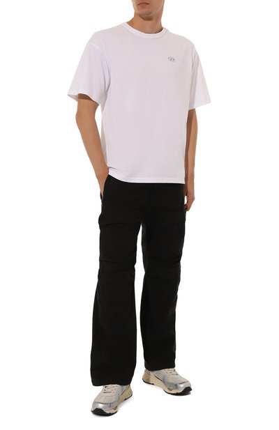 Выбеленные кроссовки D-Cage Hiking выполнили из полиэстера с термоклеевой отделкой. Язычок дополнили брендированной текстильной петлей, а задник – накладкой в рельефную полоску. Пару с усиленной шнуровкой установили на широкую подошву с контрастным логотипом.