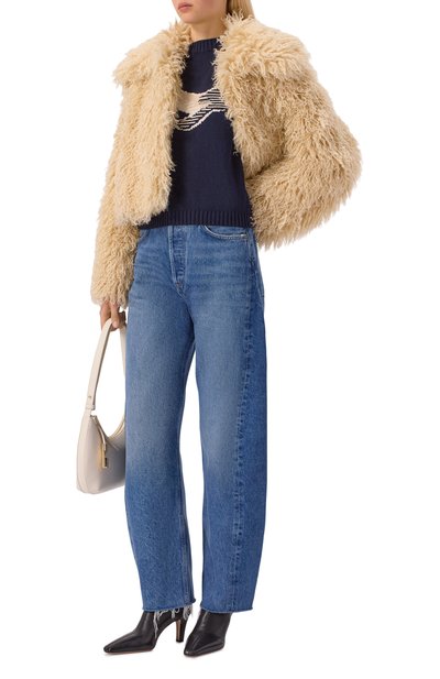 Укороченный свитер с узором Fair Isle удачно дополнит повседневный образ. Для изготовлен ия модели с круглой горловиной использовали ворсистую пряжу на основе акрила и шерсти.