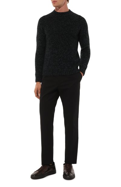 Кеды Gloria с каймой фирменного оттенка Arancio Santoni на трикотажной отделке вдоль выреза выполнили из замши. Задник изделия украсили кожаной брендированной накладкой, окрашенной в технике velatura. Модель с мотивом Double Buckle по бокам установили на широкую подошву с логотипом марки.