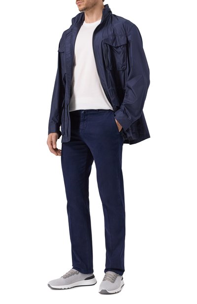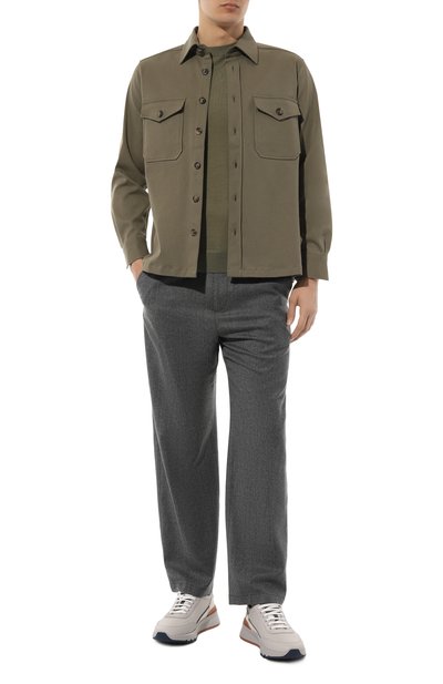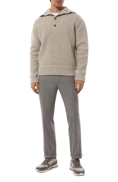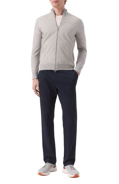 Кроссовки Innova с брендированным язычком выполнили из комбинации замши и мелкозернистой кожи. Задник, окрашенный в технике velatura, подчеркнули стежком фирменного оранжевого оттенка Arancio Santoni. Боковую накладку в виде перемычки двойных монков декорировали тисненым логотипом.