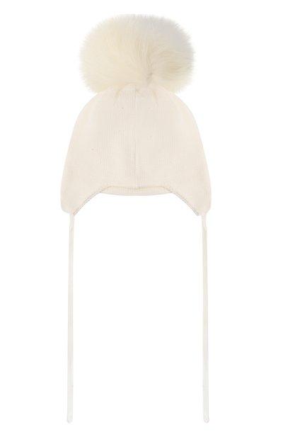 Шапку с кантом в рубчик связали из хлопковой пряжи с добавлением шерсти. Аксессуар с тонкими шнурами украсили фирменным паттерном, выложенным кристаллами.