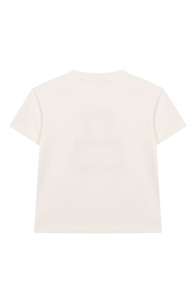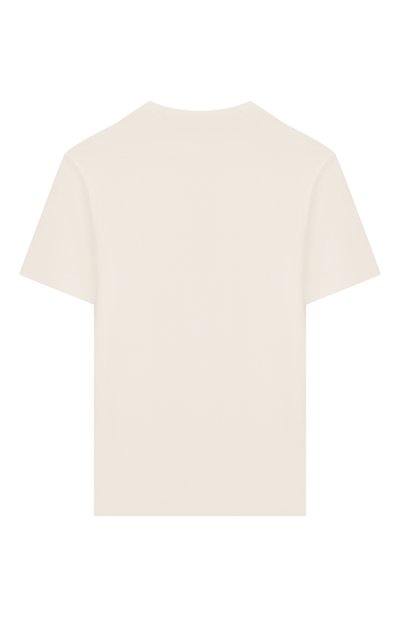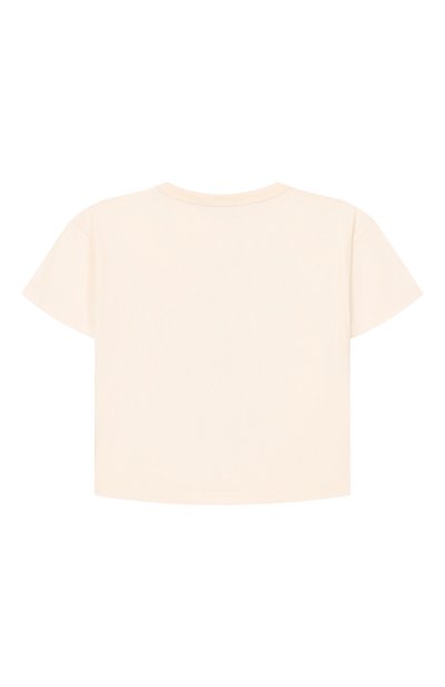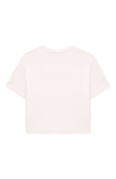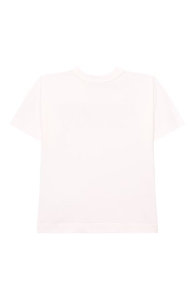 Футболку с круглой горловиной выполнили из хлопкового джерси. Спереди модель украсили аппликацией в виде литеры В из стразов и контрастным текстильным бантом.