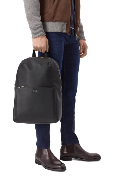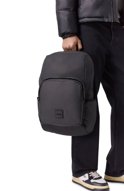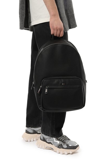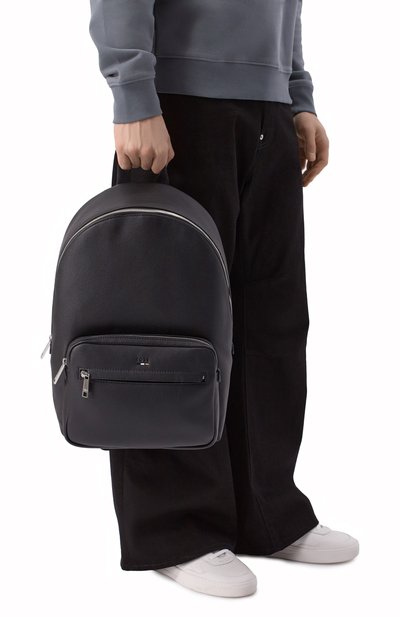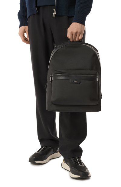 Для изготовления рюкзака Ray с плотной сетчатой спинкой использовали искусственную кожу двух видов: гладкую и с тисненым паттерном из монограмм Double B. Модель с двумя внешними карманами на молниях дополнили внутри слотом для ноутбука, карманом с застежкой и парой накладных.