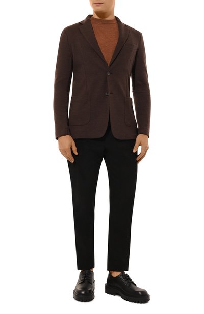 Дерби с внутренней отделкой из стриженой овчины и защитной накладкой на мысе выполнили из гладкой кожи и замши. Пару с фольгированным логотипом на язычке установили на широкую протекторную подошву.