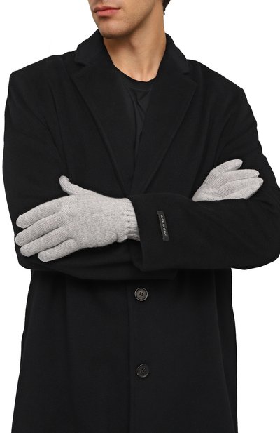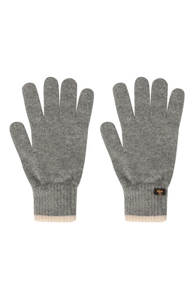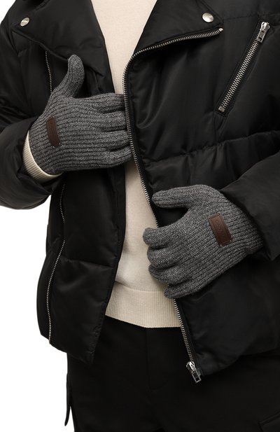 Перчатки с широким ребристым отворотом на манжете выполнили из кашемировой пряжи. Меланжевый аксессуар декорировали вязаной фирменной литерой K.