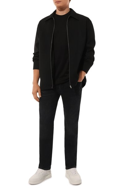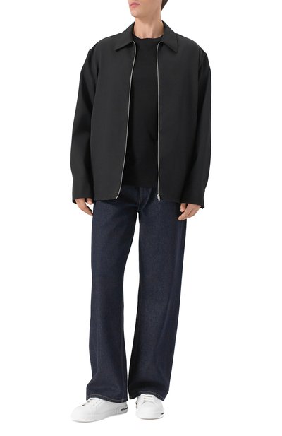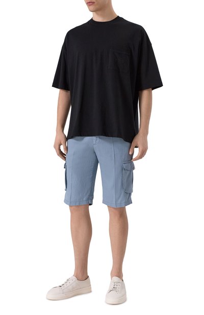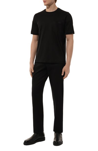 Футболку прямого кроя выполнили вручную из хлопкового джерси, обработанного специальным смягчающим составом. Спереди модель с круглой горловиной украсили вышитым логотипом марки.