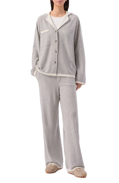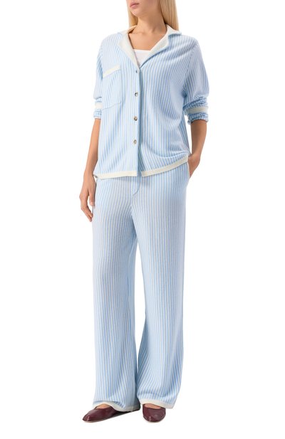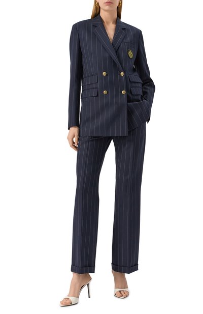 Прямые брюки в клетку выполнили из смеси полиэстера и вискозы с добавлением эластана. Задний и два боковых кармана подчеркнули контрастным кантом.