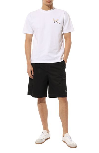 Выбеленные шорты Bleach Bandana с логотипом, вышитым нитью в тон, выполнили из хлопкового джерси. С плетеным шнурком, продетым в кулиску, рифмуется кант на заднем кармане.