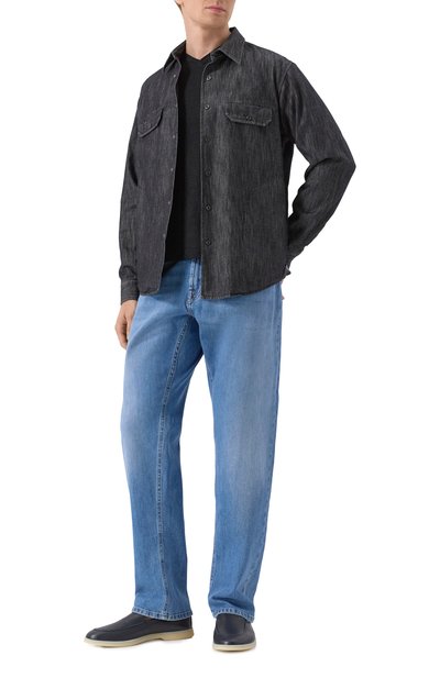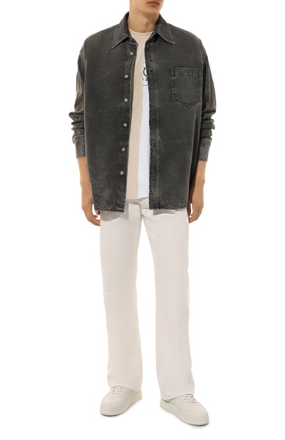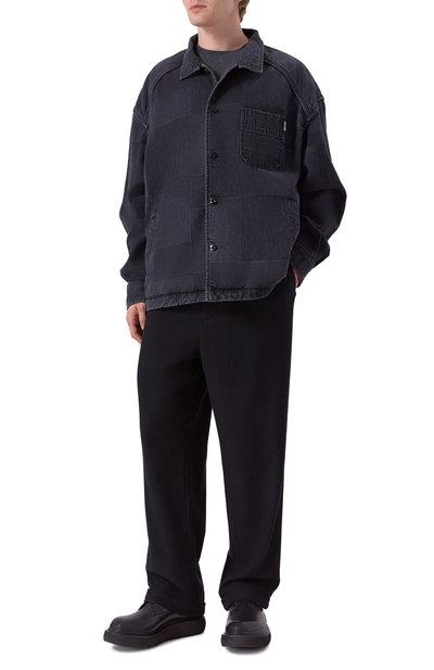 Джинсовую куртку силуэта oversize сшили из хлопкового денима. Модель с супатной застежкой и рукавами реглан с патами дополнили двумя накладными карманами с клапанами.