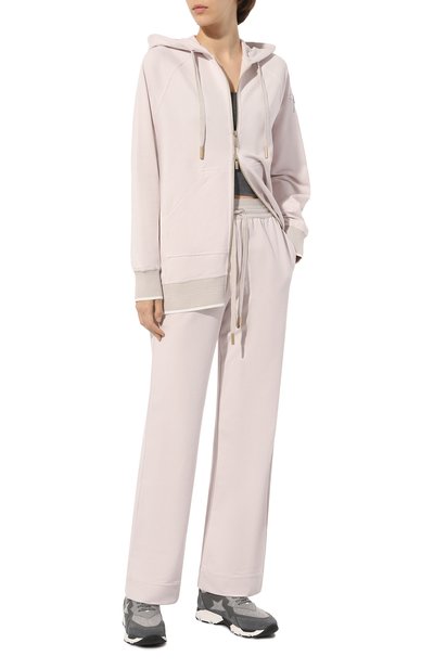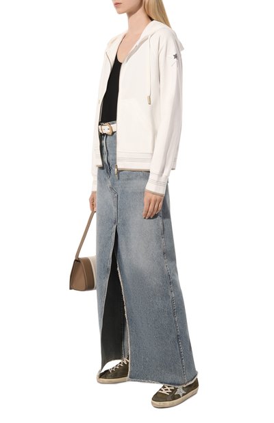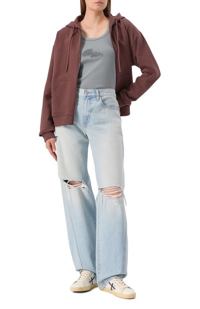 Толстовку Cane с накладными карманами и спущенной линией плеч сшили из меланжевого трикотажа с органическим хлопком и полиэстером. Объемный капюшон дополнили шнуром с брендированными наконечниками.