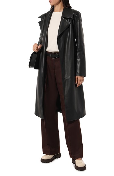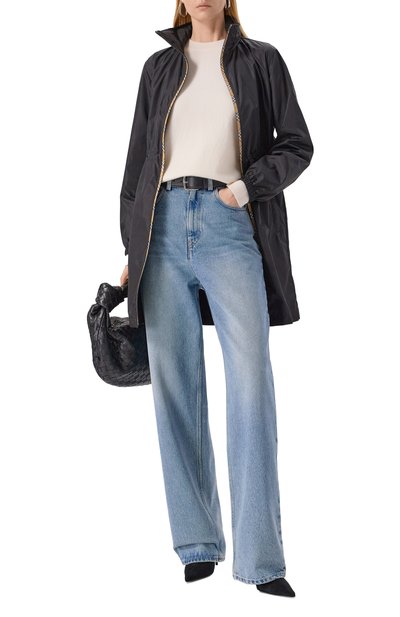 Пуловер с воротником-стойкой изготовили из трикотажа на основе шерсти первого пострига с добав лением кашемира. В тон контрастной спинке изделия выполнили вышивку Marni Symbol спереди.