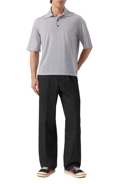 Кеды Slam из телячьей кожи украсили тиснеными логотипами на язычке и заднике. Верх с перфорацией на круглом мысе и брендированной стелькой установили на широкую подошву с протекторным узором Ribbon.