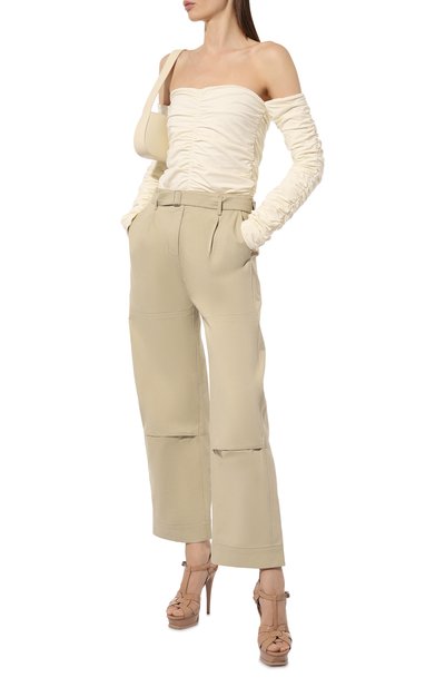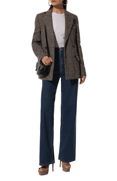 Босоножки Horsebit украсили одноименной фирменной пряжкой на перемычке. Модель на высоком блочном каблуке изготовили из гладкой кожи с металлизированным покрытием.