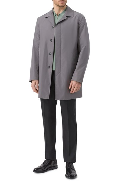 Дерби с миндалевидным мысом сшили вручную из полированной кожи. Союзку украсили тисненым логотипом марки, а шнуровку – брендированной пластиной. Туфли установили на резиновую подошву с фирменными круглыми шипами.