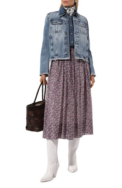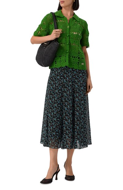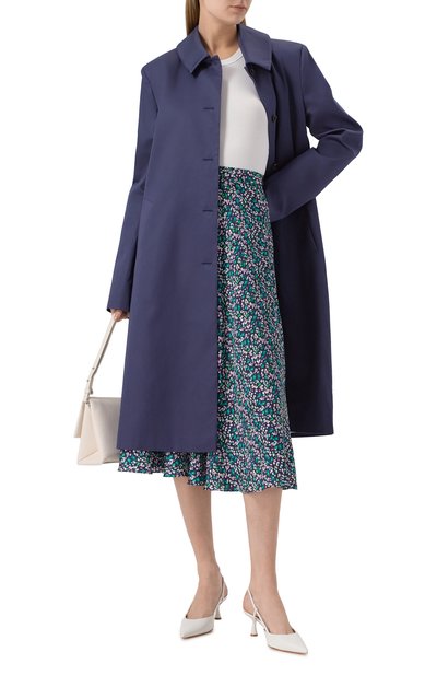 Плиссированную миди-юбку с ярким цветочным принтом выполнили из шелковистого полиэстера. За удобную посадку на талии отвечает широкий пояс-резинка с жаккардовым логотипом.