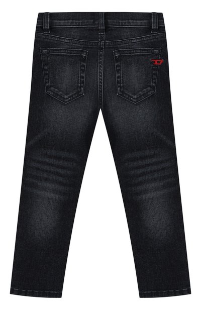 Джинсы 2020 D-Viker-J с пятью карманами выполнили из эластичного денима. Немного выбеленную модель с искусственными заломами декорировали сзади вышитой эмблемой марки.