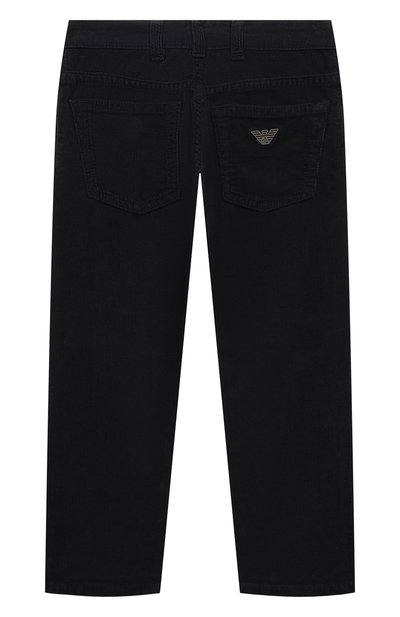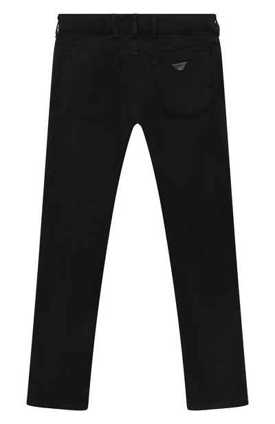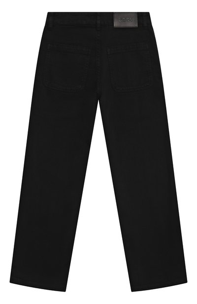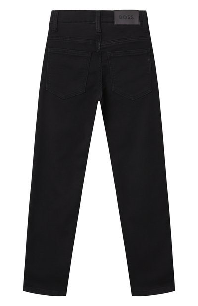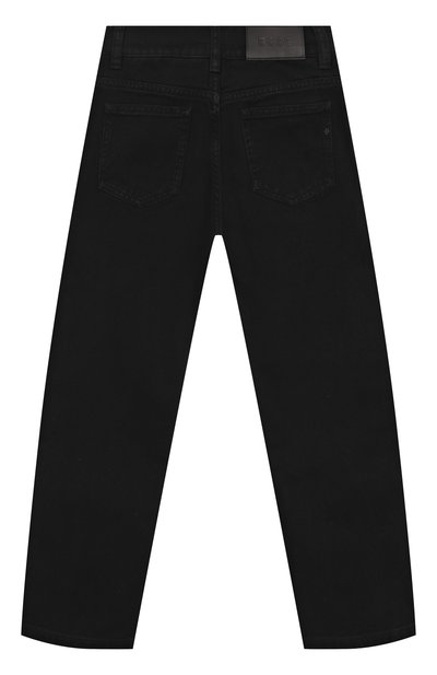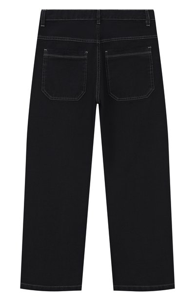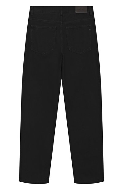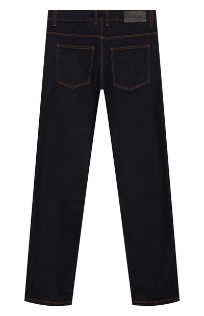 Джинсы прямого кроя выполнены из эластичного хлопкового денима. Модель со средней посадкой и пятью карманами украшена сбоку и сзади фирменными нашивками.