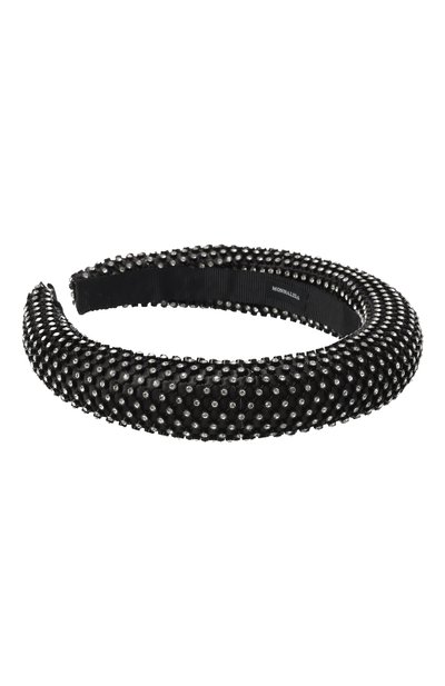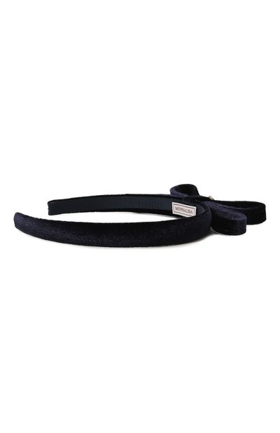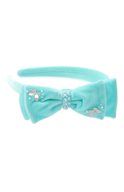 Гибкий пластмассовый каркас узкого ободка отделали лентой с добавлением нитей ламе. Из этого же ткани выполнили узкий бант, прикрепленный сбоку аксессуара.