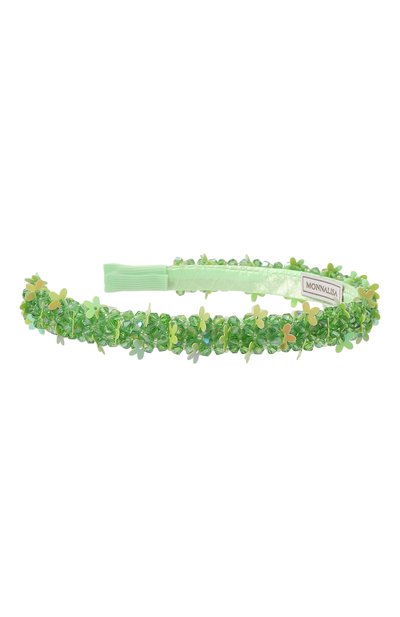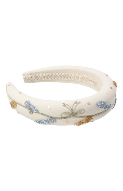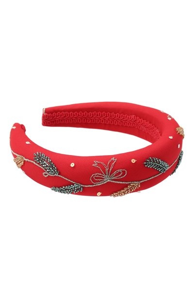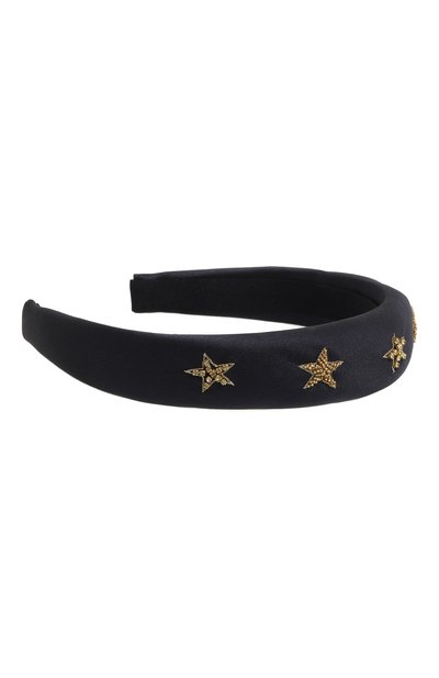 Широкий ободок обтянули полиэстером, расшив аксессуар пайетками с глиттером. На внутренней стороне модель с гибким полимерным каркасом дополнили фактурной лентой в тон.