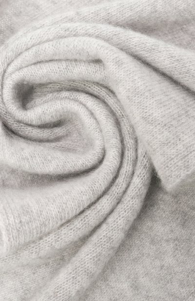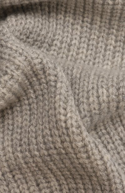 Широкий шарф связали английской резинкой из пряжи на основе шерсти мериноса. Длины аксессуара хватит, чтобы дважды обернуть его вокруг шеи.