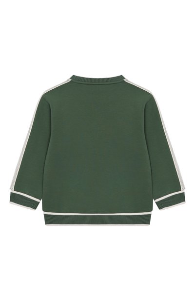 Свитшот с рифлеными манжетами и поясом выполнили из хлопкового футера с флисовой изнанкой. Модель со спущенной линией плеч и воротником-стойкой застегивается короткой молнией.