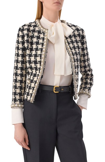 Для изготовления ремня с кобурной металлической пряжкой в форме брендированного замка использовали гладкую телячью кожу. Аксессуар дополнен шлевкой в виде цепочки.