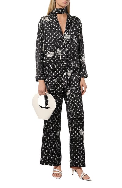 Блузу с воротником «мандарин», подчеркнутым золотистой фирменной пуговицей Gold and Gold Coin, сшили из шелка с леопардовым принтом. Модель с закругленным низом дополнили спереди жабо из этой же ткани.