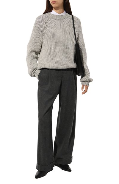 Брюки Souly со складками и проглаженными стрелками выполнили из хлопкового твила с добавлением вискозы и шерсти. Модель с высокой посадкой дополнили четырьмя карманами и шлевками для ремня.