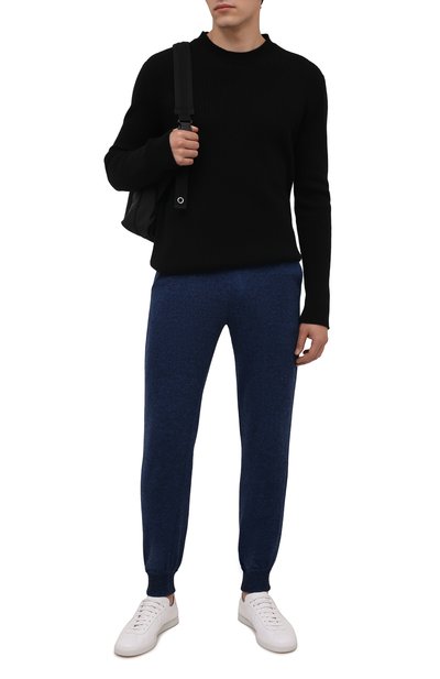 Брюки выполнили из baby-кашемира, вычесанного вручную у козлят редкой породы Hircus Bottus Laniger. Модель с эластичным поясом-кулиской в рубчик и боковыми карманами может стать основой комфортного образа.