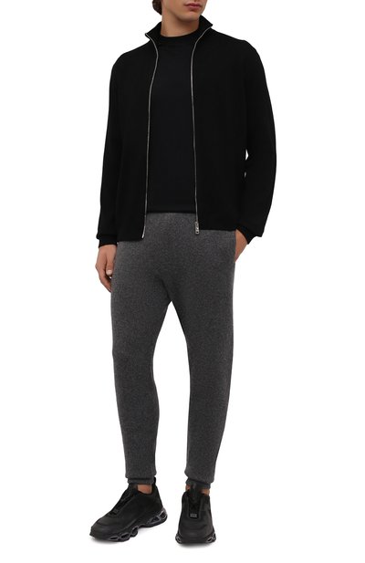Брюки выполнили из baby-кашемира, вычесанного вручную у козлят редкой породы Hircus Bottus Laniger. Модель с эластичным поясом-кулиской в рубчик и боковыми карманами может стать основой комфортного образа.