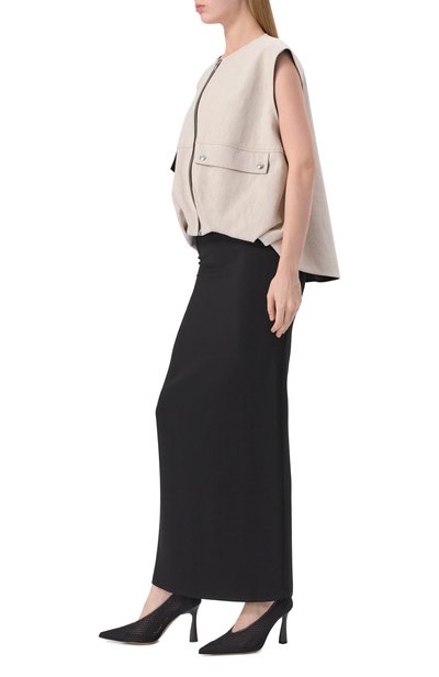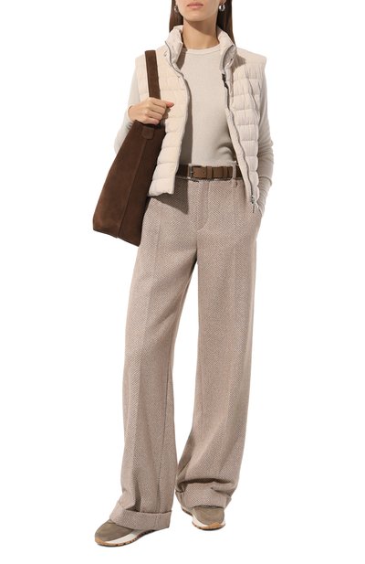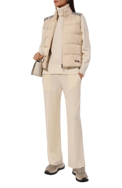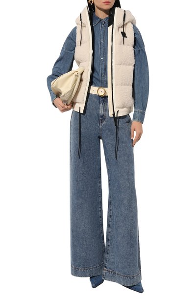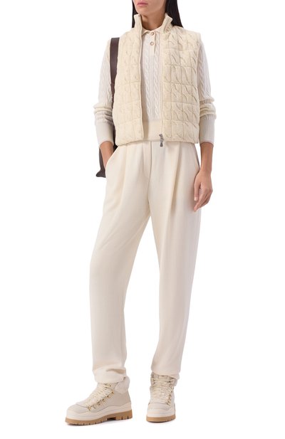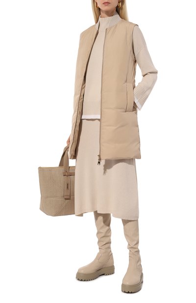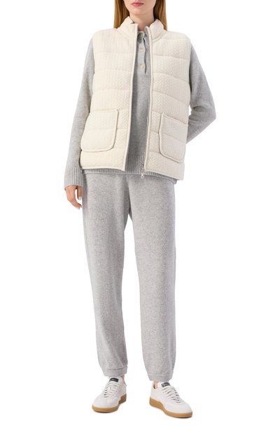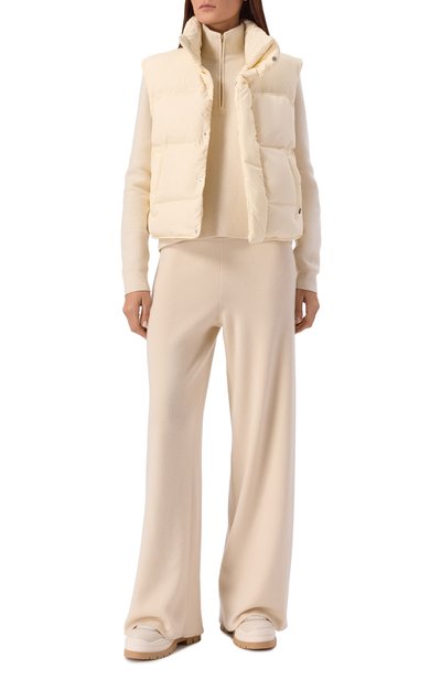 Стеганый жилет Resort bright corduroy на гусином пуху выполнили из вискозного вельвета с добавлением металлизированной нити. Укороченная модель с боковыми карманами и потайным поясом-кулиской застегивается встречной молнией. На высокой горловине сзади — брендированная пластина.