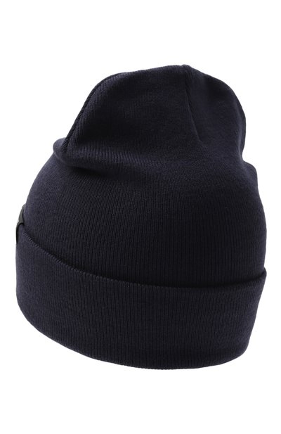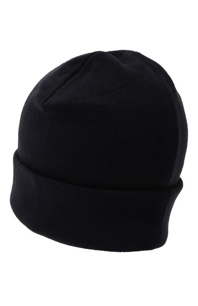 Для изготовления шапки бини использовали двухслойный трикотаж из акрила с добавлением шерсти. На отвороте аксессуар декорировали патчем с рельефным логотипом марки.